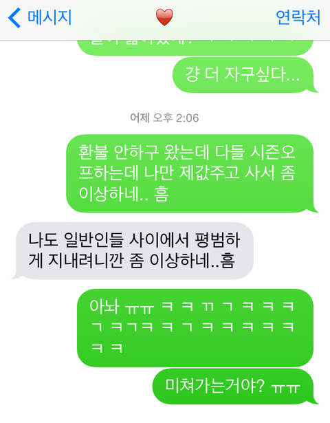 나는 아까 얘기 다했다 잘하기로 하지 않았냐.. 하고 또 말이 없었네요. 자기전에 제가 보냈습니다.
