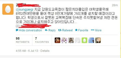 베플에 공감함. 치마자체가 길든짧든 앉으면 보임. 우리는 천이랑 압정 공동구매해서 책상에 박아놨었음ㅋㅋㅋ고등학교에선 15시간을 정자세로 긴장하고 있을순없으니 더더욱!