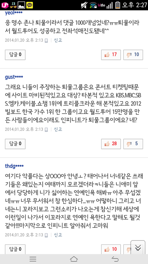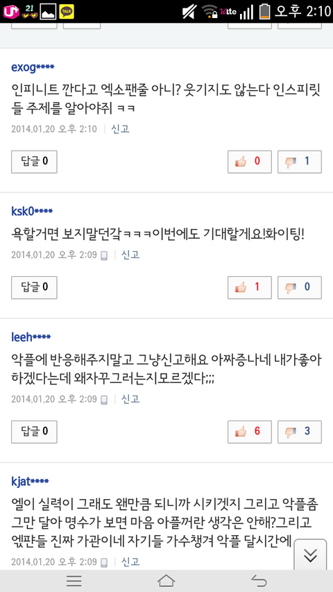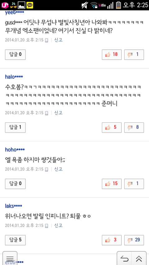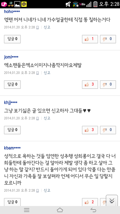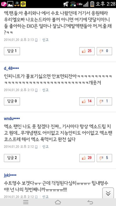 시발들이 먼저꼭선시비털어놓고 나중엔 엑소오빠욕하지마세요? 욕안하게생겼니? 누가먼저댓테러했는데?