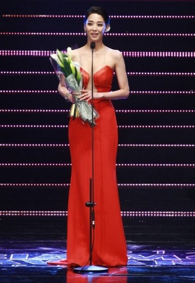 상당히 파격적인 드레스를 입고 모델 시상식에 참석한 최근의 한고은