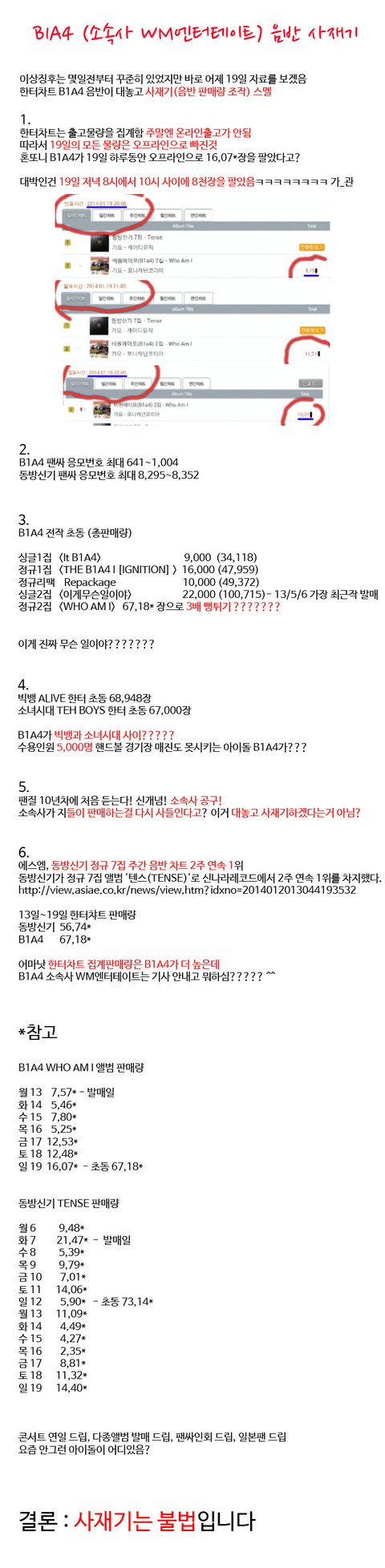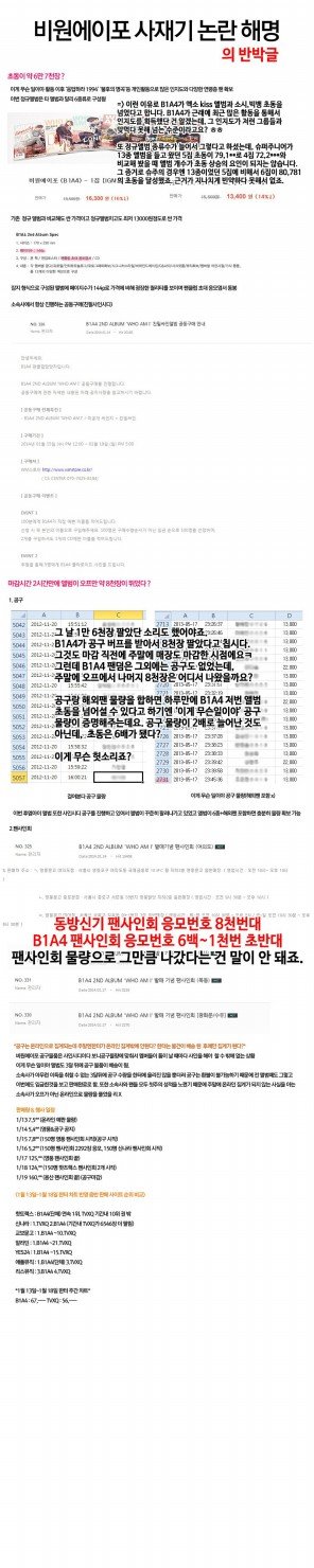 현재까지의 b1a4 사재기 의혹글,해명글,반박글 모아봄