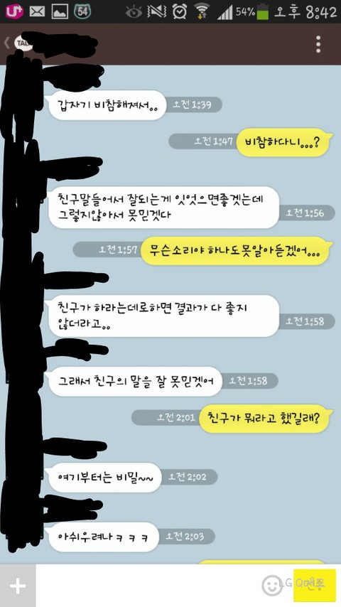 의미심장한 말만 자꾸 늘어놓고 솔직히 짜증나 받아주기 귀찮아서 씹으면 너무해ㅜ 이런 식으로 오고 막 내가 할 말이 없다고 그랬더니 막무가내로 삐지고 톡하고...