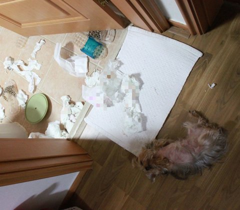 쓰레기통 뒤지는걸 너무 좋아함.그것도 화장실 쓰레기통........