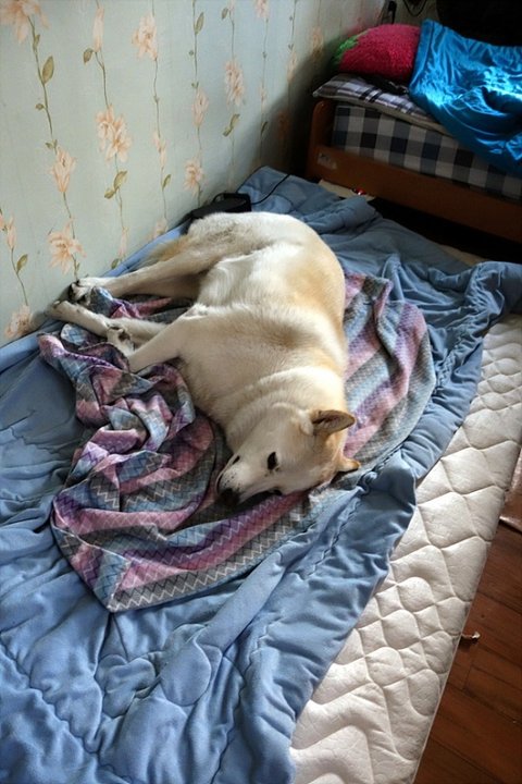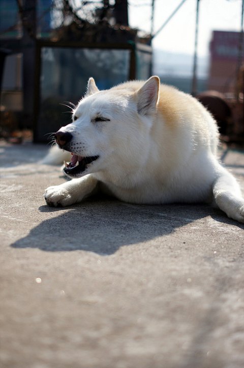 사람도 그렇고 개들도 목욕후엔 몸이 좀 노곤하지요.. 하품...