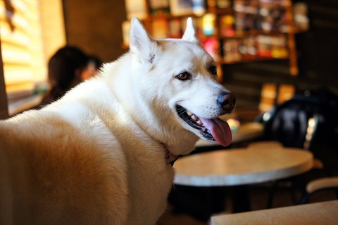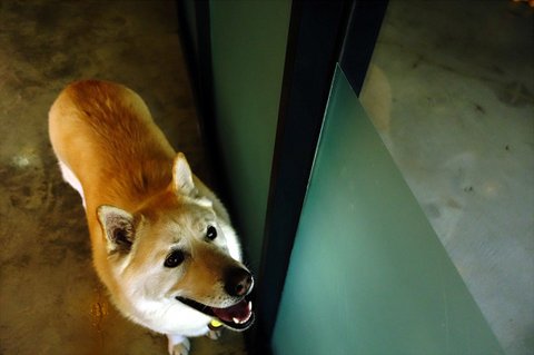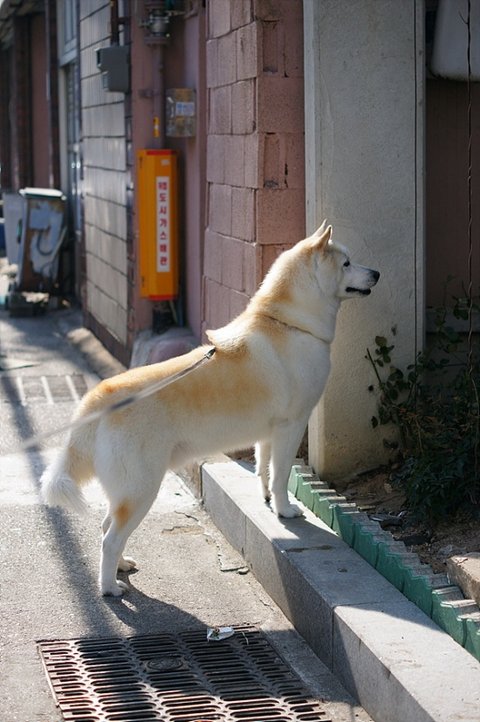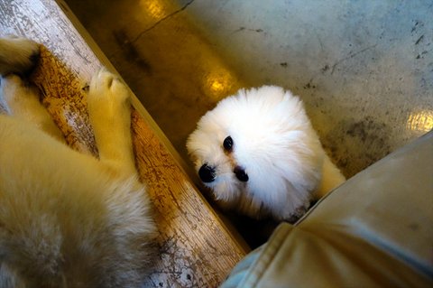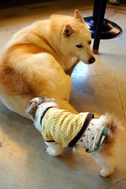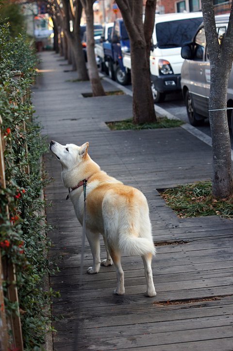 오후에 집에서 가까운 애견카페에 놀러가는 중에. 킁킁거리는 심바