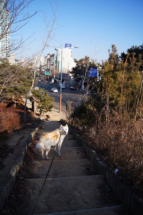 다리 밑에서 불쑥 나타난 솜사탕머리.ㅋㅋ