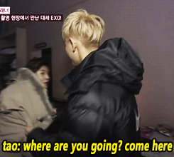 몸 숙이고 지나가다가 타오한테 붙잡힘~ ㅋㅋㅋㅋㅋㅋㅋ