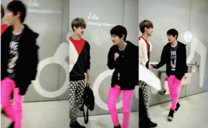 다리에 놀라고.. 핑크색바지에 놀라고..