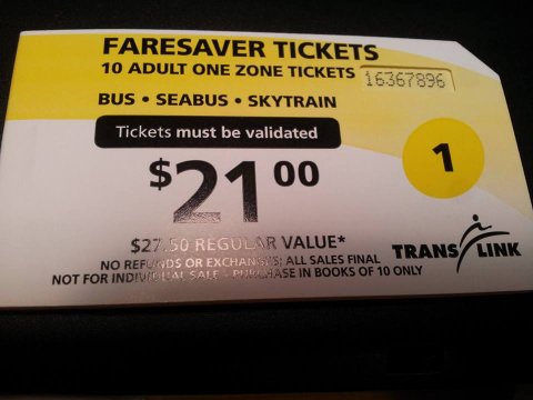 메르토 밴쿠버 즉, 1존, 2존, 3존에 속하는 전 밴쿠버 지역에서는 트랜스링크라는 곳이 공공 교통 수단을 경영하고 있어요. 똑같은 승차권으로 스카이트레인, 버스, 시버스를 모두 탑승할 수 있습니다. 한번 탑승 할 때마다 구입하는 싱글 페어 티켓이 있고 이 싱글 페어 티켓을 묶음으로 할인하여 판매하는 페어 세이버 티켓이 있어요. 대중교통을 이용하는 일이 많은 사람들은 먼슬리 패스를 구입하여 사용합니다.