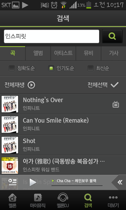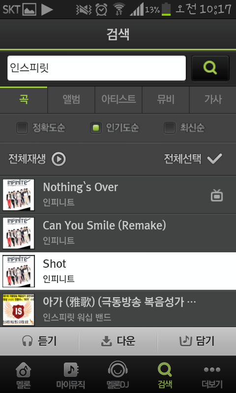 멜론에 들어가서 검색을 누른뒤 인스피릿을칩니다