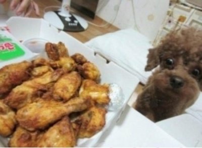 치킨을 넋을 놓고 바라보고있어..ㅋㅋㅋ