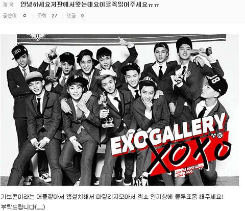 투표 끝냇으면 엑소 홈페이지에 홍보좀해주세요~