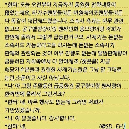 괜히다른얘기들먹이지마시고,저희도 타팬덤분들과 타가수분께 피해드린점 입에담지못할말을했던점 죄송합니다.