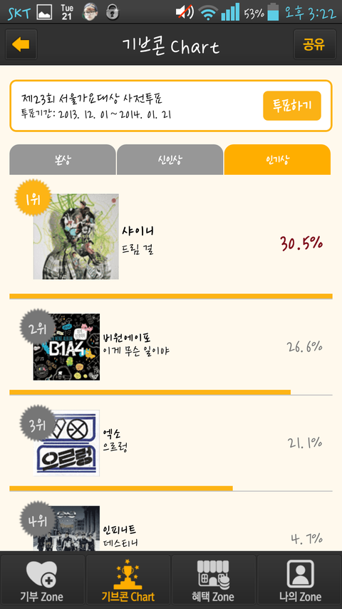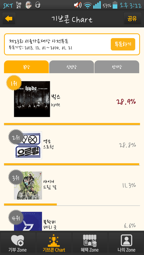 엓팬쩔어 역시 ..♡ㅋㅋㅋㅋㅋ 아쫌만더힘내자 나만아니면 된다라는생각은 휴지통에버리고오고 빨리가서 튜표하자 엑소상받는거보고싶잖아ㅠㅠㅠㅠㅠ ♡