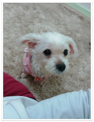 견종:말티즈 이름:태희 나이:6~7세 추정 몸무게:2.6키로 성격:애교가 많고,똑똑하며 사람을 잘 따릅니다.