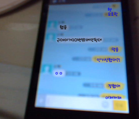 공기계라 캡쳐가안됨 ㅠㅠ 유심이없어서SD카든가..암튼 ㅋㅋㅋㅋㅋㅋㅋㅋㅋㅋㅋㅋㅋㅋㅋㅋㅋㅋㅋㅋㅋㅋㅋㅋㅋㅋㅋㅋㅋㅋㅋㅋㅋㅋㅋㅋ그래가지고 그뭐지 캠으로 캡쳐해가지고 컴퓨터로 똑같이 적어씀ㅋㅋㅋㅋㅋㅋㅋㅋㅋㅋㅋㅋ오빠친구들5명있으니깐 오빠까지 60번!! 헐..♡