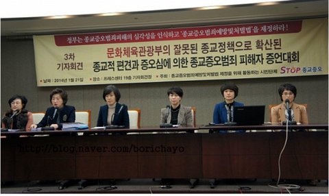 종교증오범죄예방및처벌법 제정을 위해 활동하는 인권시민단체 '종교증오범죄피해자연합 STOP종교증오'가 1월 21일 오전 10시 20분 서울 프레스센터 19층 기자회견장에서 종교증오범죄피해자들의 피해실태를 증언하는 3차 기자회견으로 '문화체육관광부의 잘못된 종교정책으로 확산된 종교적 편견과 증오심에 의한 종교증오범죄 피해자 증언대회'를 개최하였다.