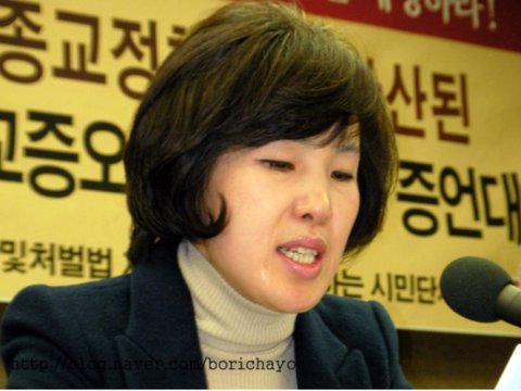 (사진=borichayo)원서희 STOP종교증오 공동대표가 피해 증언자로 나와 문화관광부(現 문체부)가 발간한 정부용역보고서로 종교적 증오심에 고취된 남편에 의해 폭언·폭행·위협·협박·학대·개종강요 등을 당하다 결국 가정이 파괴된 피해 실상을 밝히며 눈물을 흘리고 있다.
