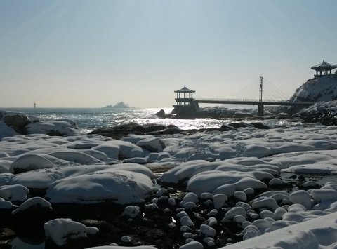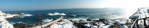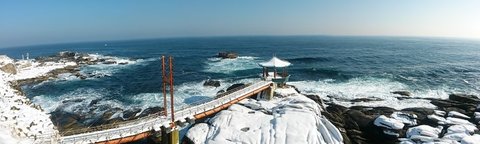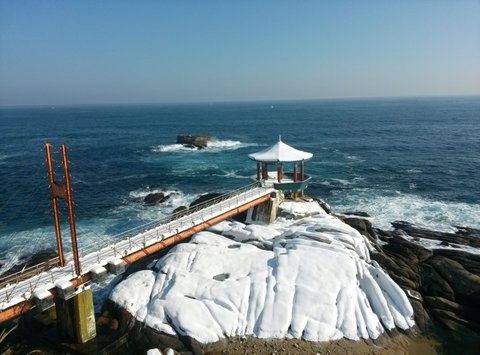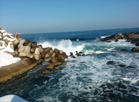 잠시 뒤 도착한 메인 코스, 동명항입니다. 눈도 많이 내렸고 파도도 심해 바다쪽으로 돌출된 전망대는 폐쇄됐지만, 영금대라는