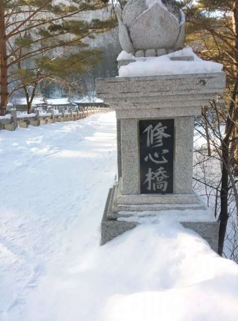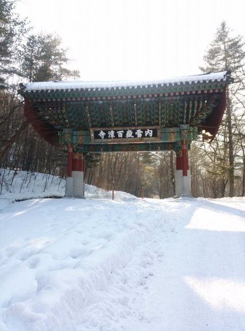 찬바람과 숨까지 가득 차 얼굴이 새빨개질 무렵, 백담사가 눈 앞에 살며시 보입니다.