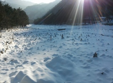 겨울인지라 물이 마르고 눈이 가득 덮여있는 백담계곡에는 또 하나의 장관이 펼쳐집니다.