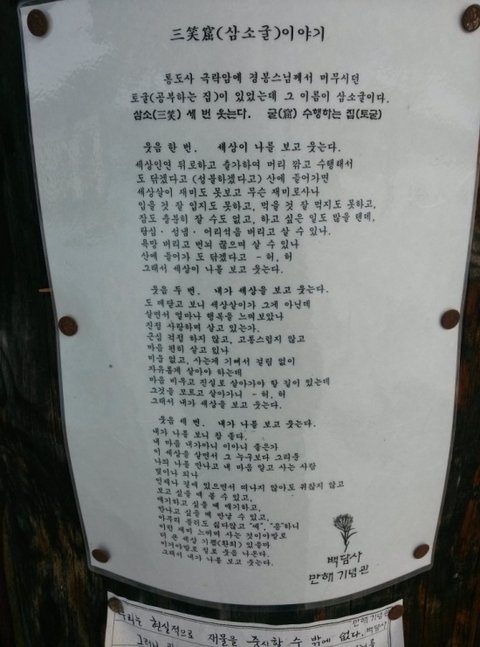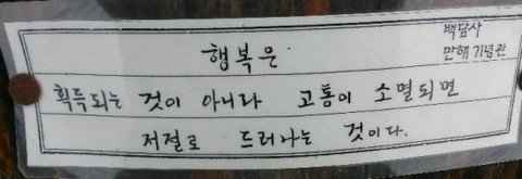 절에 들어와서는 만해기념관 앞에 붙은 글귀 두 장만 찍고는