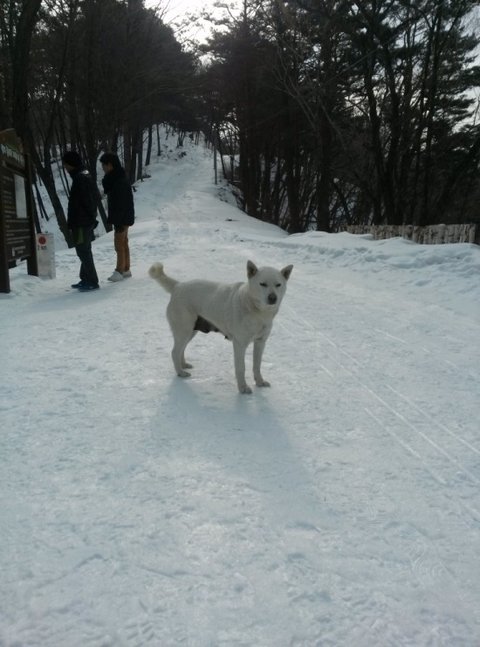 블로그에서 봤던 할매 강아지도 보이고 흰 숲이 가득 들어오네요.