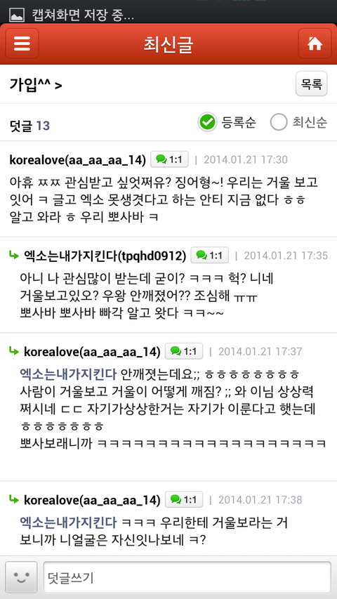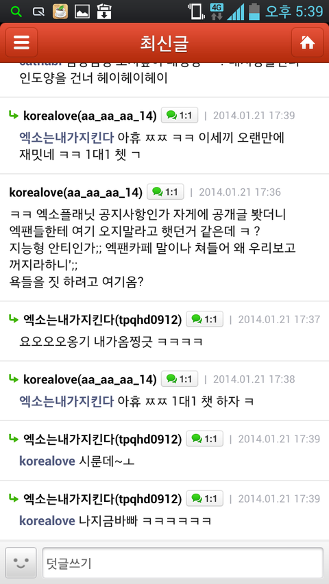 저기서 korealove 가 저인데 나보고 엑팬이 거울보면 안깨지냬