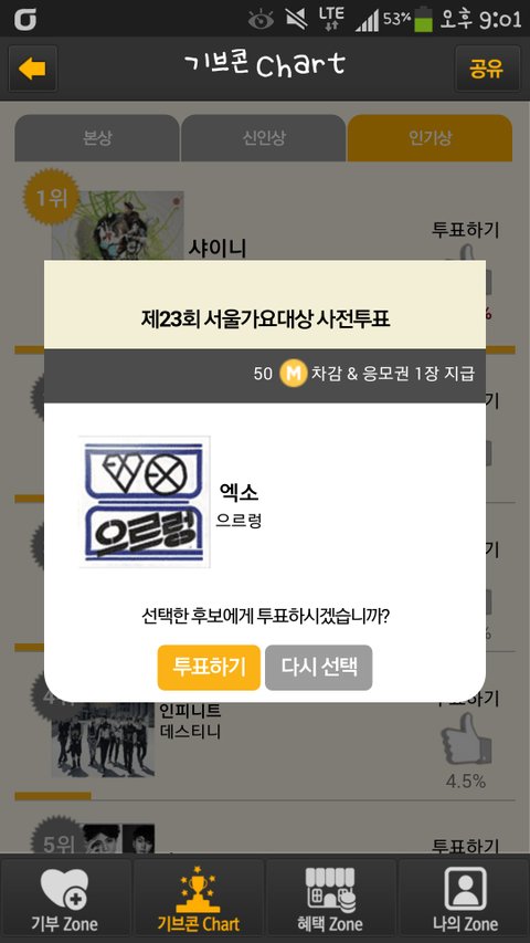 왠만한 투표나 참여해야되는거는 다 엑소를위해서 참여하는편이지만서가대투표는 너무 절차가 길기도하고 어렵고 회원가입도 일일히하고 다운로드도 받아야되서 되게 귀차니즘인 이 한 됴자기는 결국 이제까지 밀고밀어서 안했어