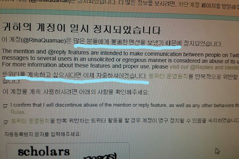 여러 사람한테 불쾌한 멘션을 보냈댘ㅋㅋㅋㅋㅋ