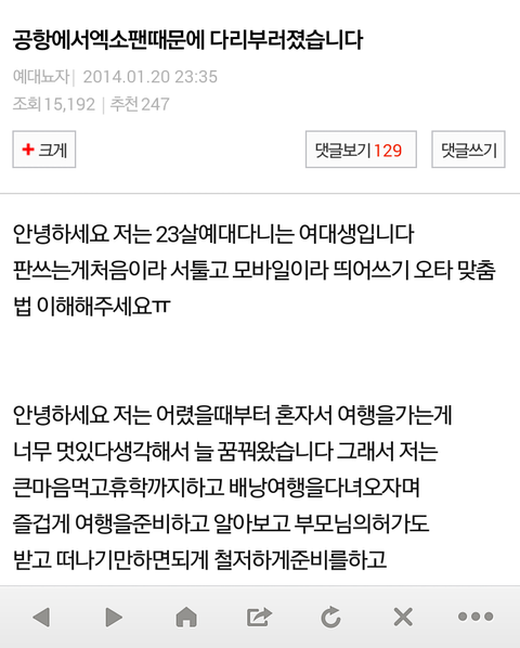 저 예대뇨자씹라년이 걍 공항에소 엑펜들한테 밟혀서 발꿈치 뿌러졋다고