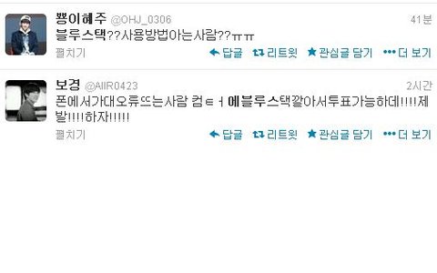 트위터에 블루스택 검색해보면 엑팬들이 서가대한테 블루스택 따지는거 나오고 좀 내리면 바나들이 블루스택사용법 묻는거 나옴ㅋㅋㅋㅋㅋㅋㅋㅋㅋㅋㅋ위의 두명은 둘다 바나임