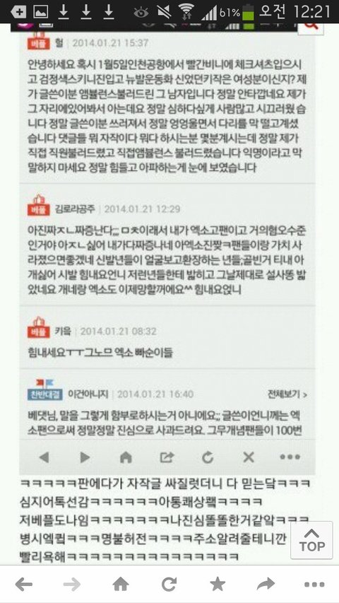 그엑소팬때문에 다리부러졌다는자작글...내가톡선가서 다시읽고왔는데 그거 엑소안티카페(가망소)거기서 쓴글이래ㅡㅡ 와 왜저래진짜 그럼그렇지 하.. 저번에그렇게기사까지올라왔음 그만좀하지..ㅠㅠㅠㅠㅠㅠ