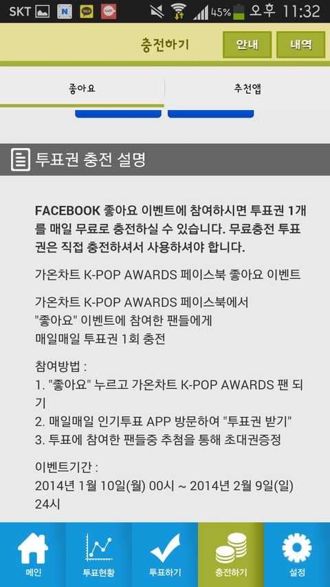 3.이건 서가대랑 비슷해 추천앱을 다운받아서 충전을 받고 투표하면돼
