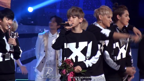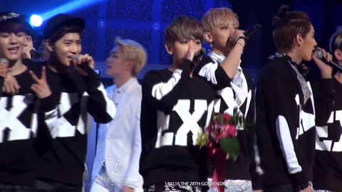 골든디스크으르렁앵콜할때트로피를가지고잇던경수