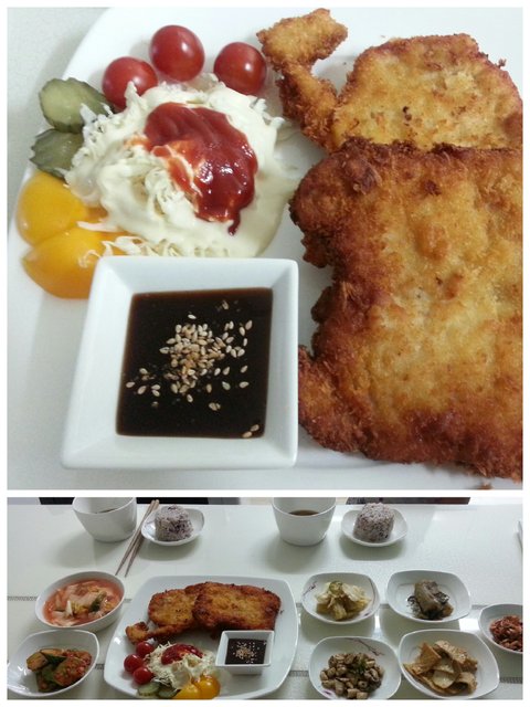 제가 직접 만들면 좋겠지만,,, 직장맘의 시간 관계상~ 동네마트 수재돈까스 한팩만 사다가 튀기기만 하여~ 집에 있는 재료로 데코해 봤어요...^^