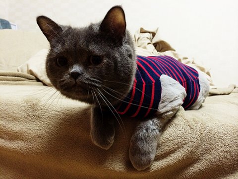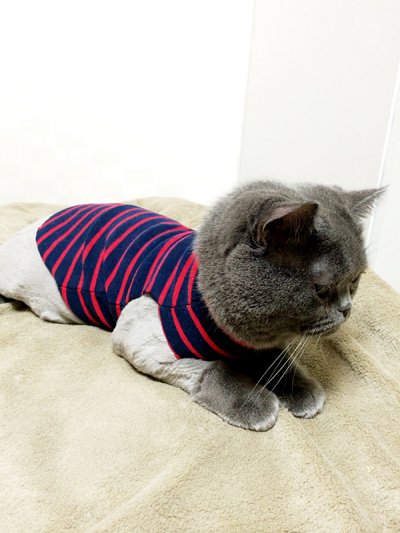 뒤집어서 이제 천이에게 입혀 보겠습니다