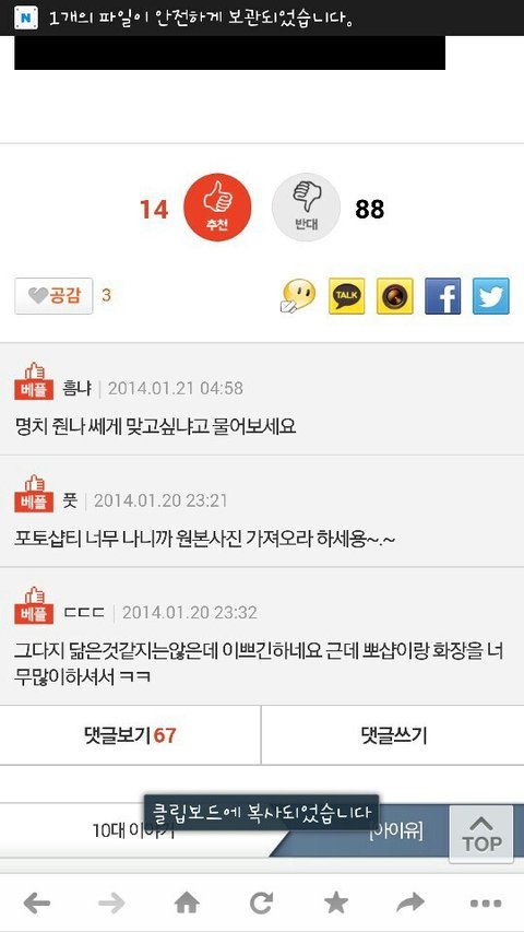 베플 보니까 조회수 몇만에 순위권까지 들고 악플도 명치를 후린다느니.. 인신공격 내용들 많아서