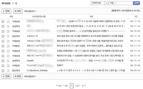 쪽지에 보니 죄다 카페 쪽지라서 삭제를 하려함