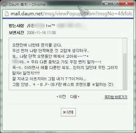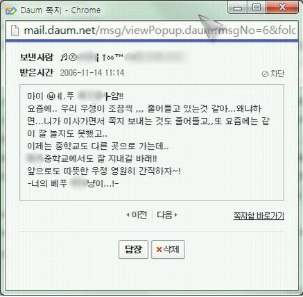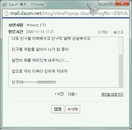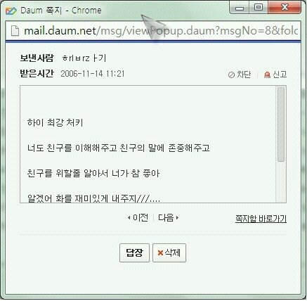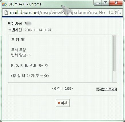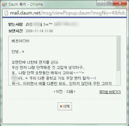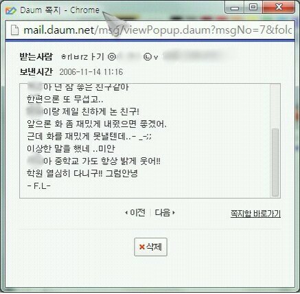 친구1이 보내준 쪽지에 내가 마지막으로 보냄