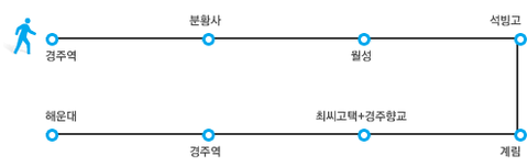 경주역에서 분황사까지는 3~4km를 걸어야 합니다.