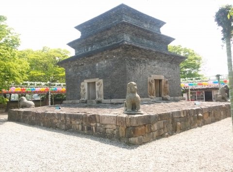 탑 사방에는 미닫이 형태의 문이 나있고 귀퉁이마다 돌사자상이 늠름히 탑을 지키고 있네요.