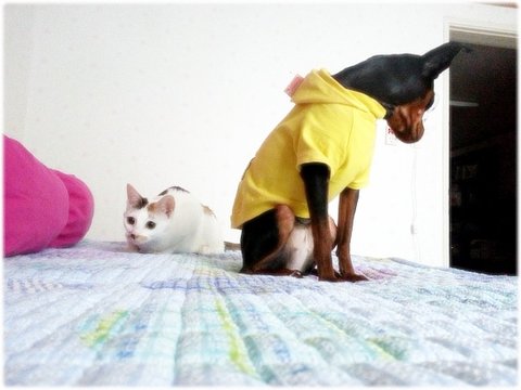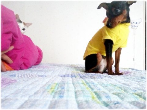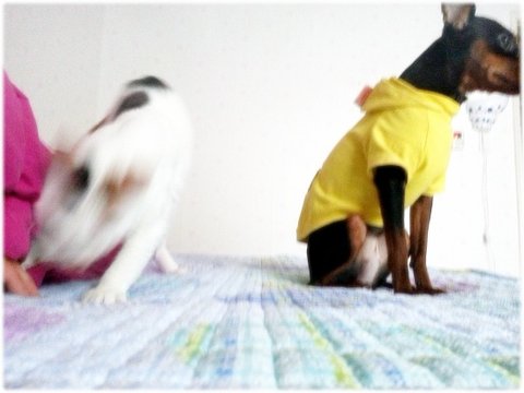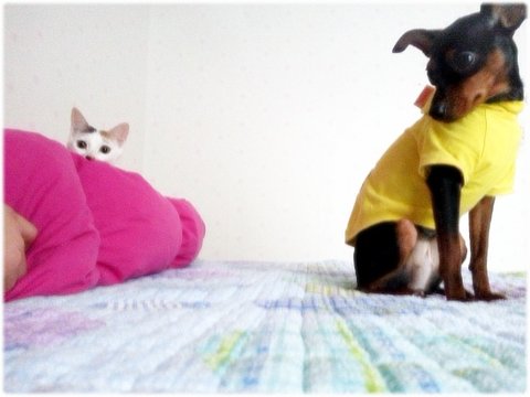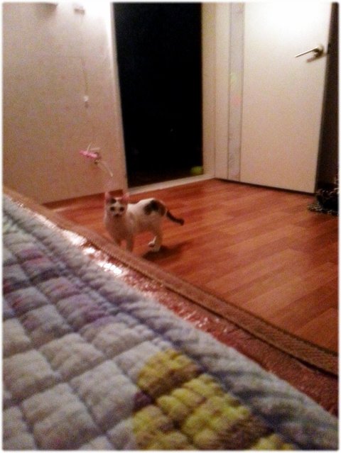 콩이는 내가 이불에 눕기만 하면 장난질 발동.