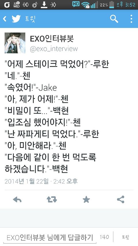 ㅋㅋㅋㅋㅋㅋ루한이 빼고 스테이크 먹었엌ㅋㅋㅋㅋ루한이 짜파게팈ㅋㅋㅋㅋㅋㅋㅋㅋㅋㅋㅋㅋㅋㅋㅋ