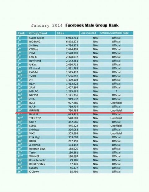 2014 페이스북 남자 아이돌그룹 순위 중
