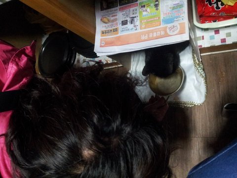 쓰레받이 에서 저러고있네요..왕귀요미..♥♥