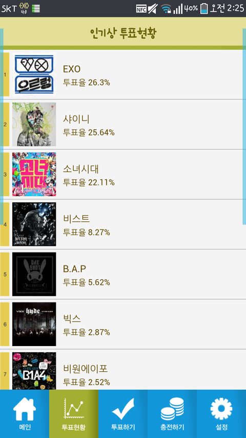 서가대충격많이먹엇지..?나도그랫어..ㅋ그래서방금투표하고오는즁!!나투표하고나니까올라갔다아기분조아흐흐흐흐흐이렇게엑소팬끼리단합되면얼마나좋아꺅ㅅ..사..사골먹을래?