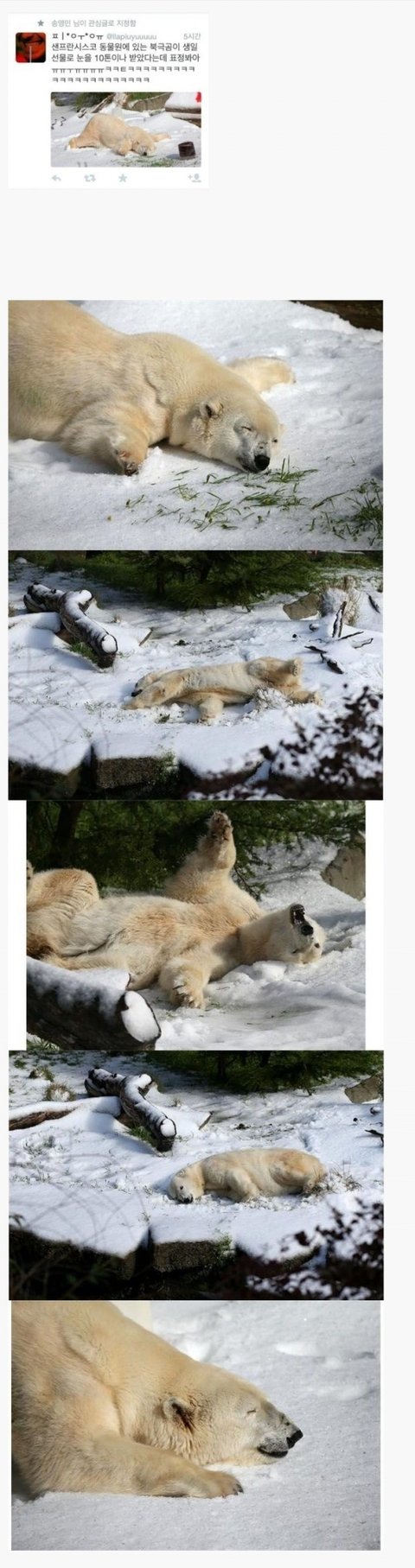 북극곰 표정 보면 흐뭇한데 왠지 씁쓸한 느낌도 남.... 만약 북극에 있었더라면 저런 표정 매일 지을수 있었을텐데