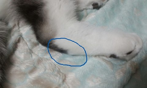 미남이가 계속 뒷발 젤리를 핥길래 자세히들여다보니 염증이 나 있더라구요