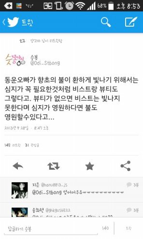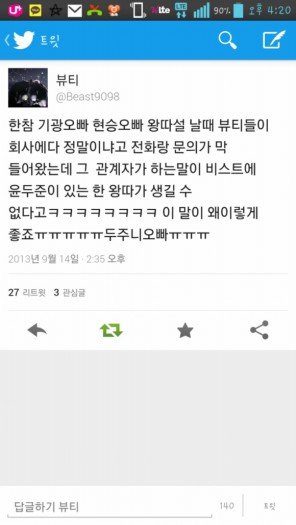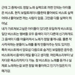 뷰티가 아직 무개념이미지를 완벽하게 벗은것도 아닌거같아요 그래도 비스트를 좋게 봐주셔서 감사들하고요 타팬분들 친....친하게 지네요♥